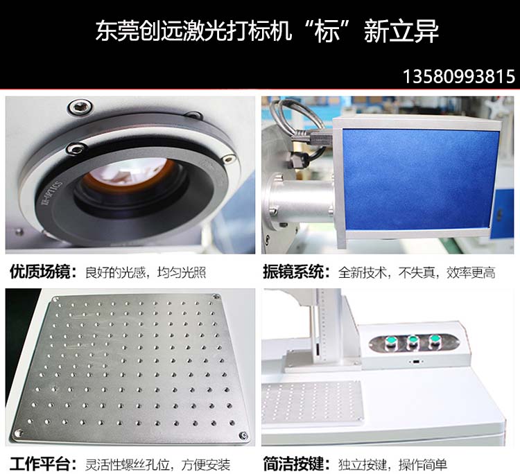 采用德国IPG光纤激光器,光束质量比传统的好很多,光斑更小,适用于精密精细打标。