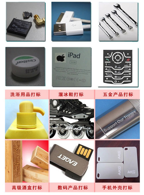 各类金属及大部分塑胶产品,效果比普通光纤打标机更细腻,在手机中框,手机外壳,透光按键打标中有明显优势。