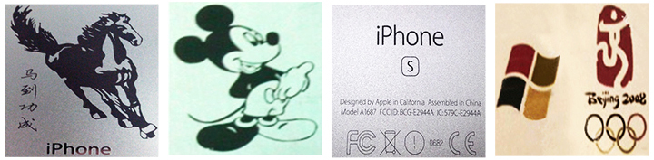 各类金属及大部分塑胶产品,效果比普通光纤打标机更细腻,在手机中框,手机外壳,透光按键打标中有明显优势。